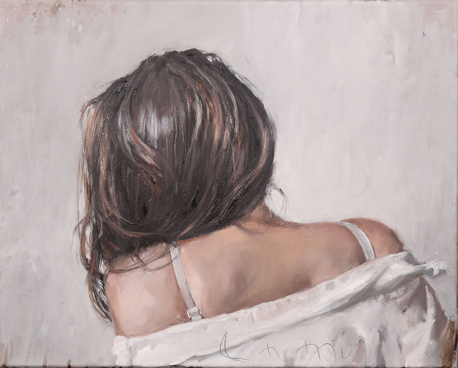 Frau im weißen Hemd I 40 x 50 I Öl auf Leinwand I 2024